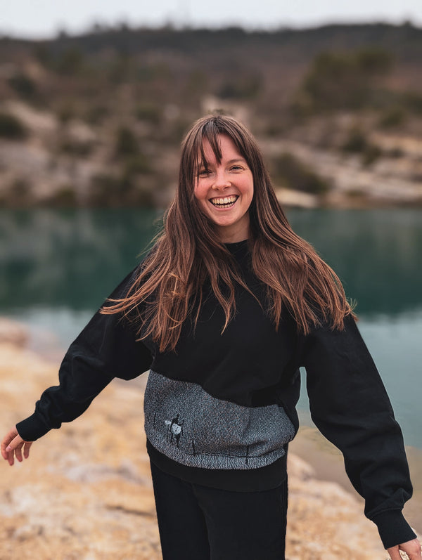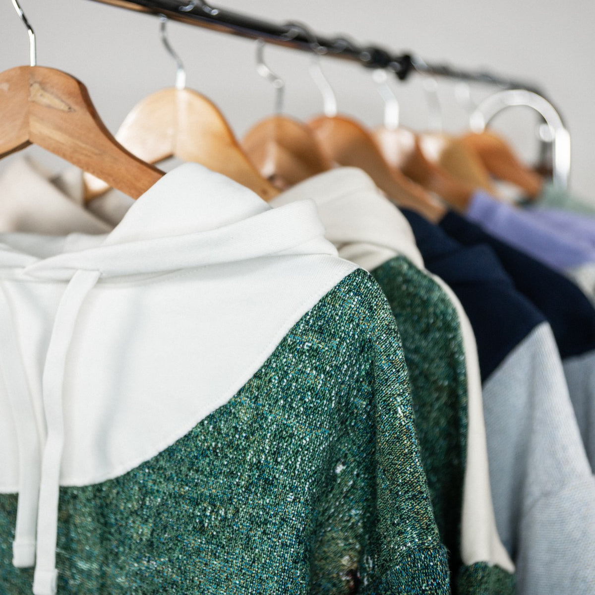 Wir setzen dabei auf eine ressourcenschonende Produktion. In der Recrafted-Kollektion verwenden wir Second-Hand-Pullover, in der Original-Kollektion sind nachhaltig produzierte Hoodies und Sweater aus Bio-Baumwolle die Basis für unsere Designs.