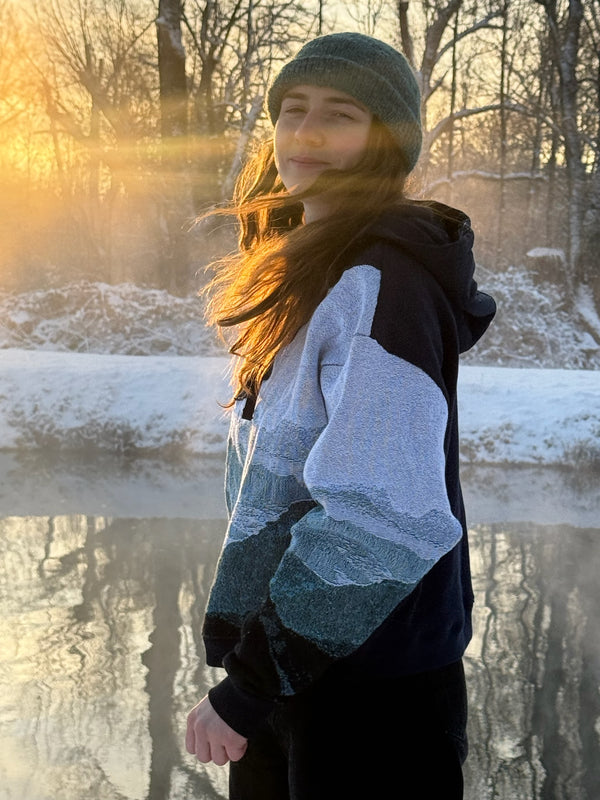 Wir lieben es, draußen unterwegs zu sein und die Natur zu erkunden. Deshalb übertragen wir fotografierte Outdoor-Motive in textile Strukturen und nutzen diese Stoffe schließlich für unsere Kleidungsstücke. Die Motive unserer Pullover sind dabei nicht gedruckt, sondern direkt in den Stoff eingewebt. Dadurch werden sie Teil des Materials selbst – langlebig, strapazierfähig und beständig im Alltag und auf deinen Abenteuern.